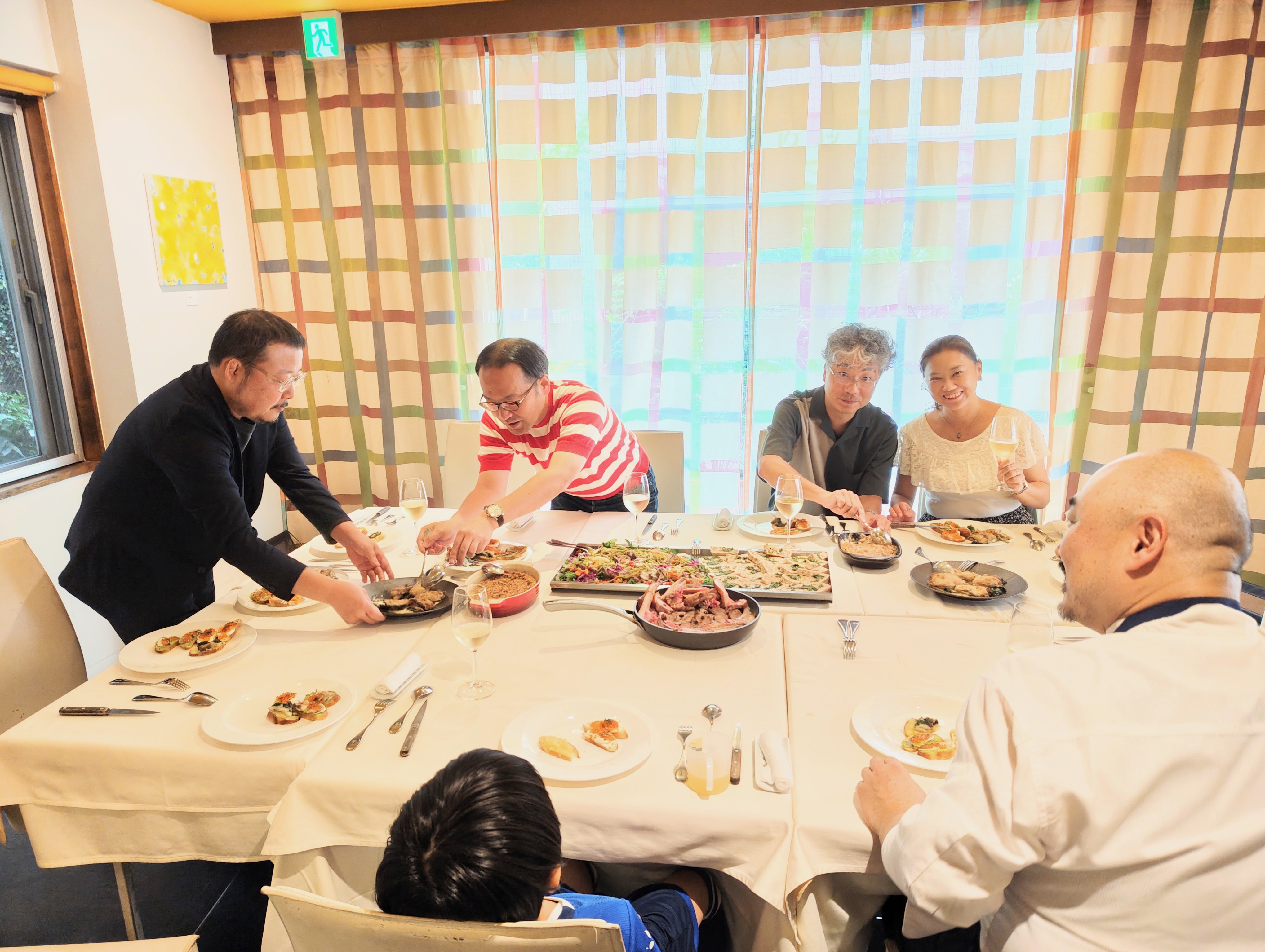 今年のパーティーへの出席者は少人数でしたので、着席でのゆったりまったり会となりました。料理を少し作りすぎた感もありましたが、懇意にしているワインインポーター、W:ダブリューの若槻さんからお祝いにクロ・デュ・ノワイエ:ドメーヌ・グロボワ(シノンの作り手。難しいカベルネフランを素晴らしい状態に仕上げる稀有な生産者)のマグナムも贈られて、素敵な会になりました。