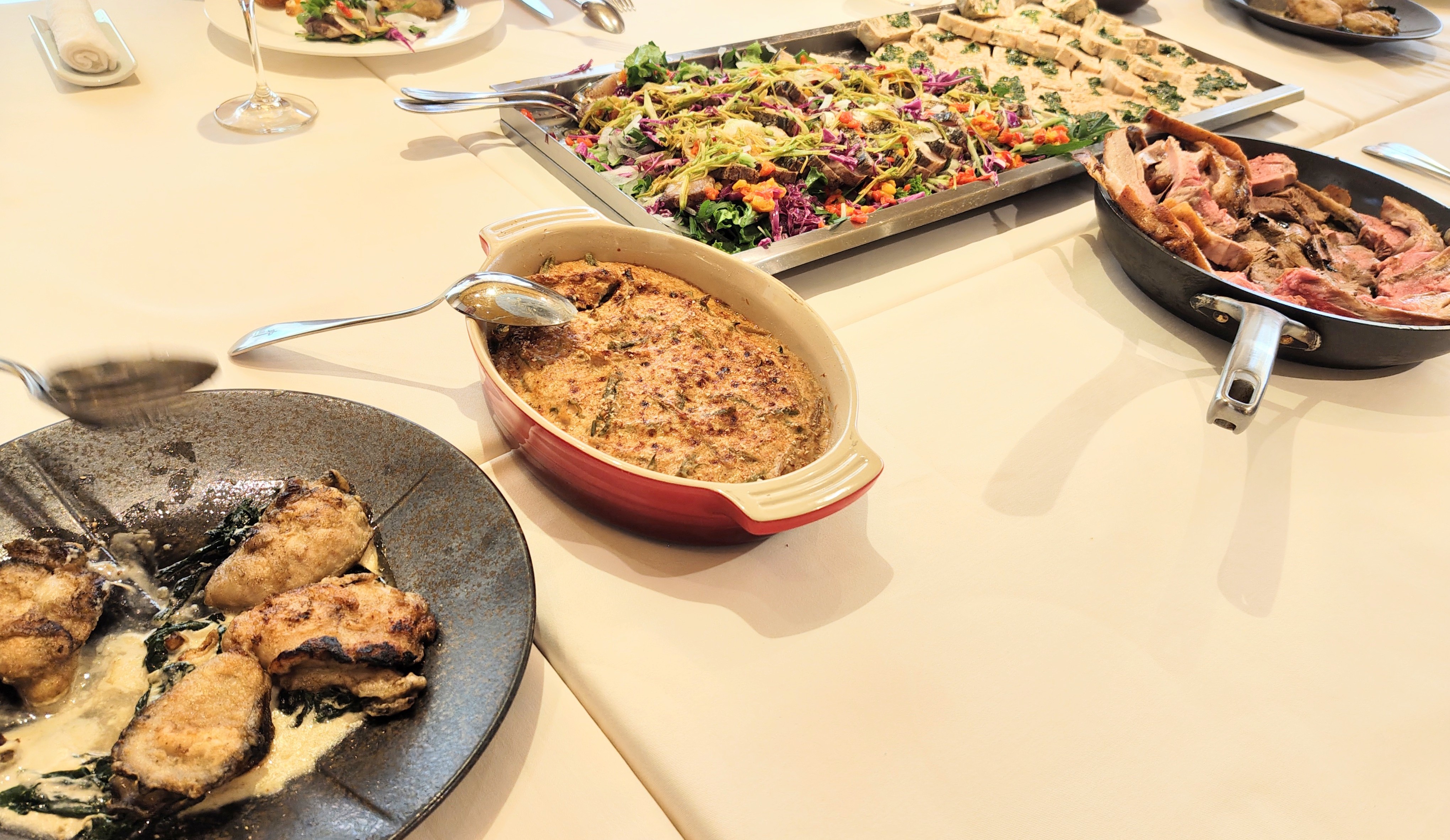 今年は日曜日にして、お昼のビュッフェスタイルにしました。お飲み物(シードル、ハウスワイン、ソフ トドリンク)込みで、6600円。(※お支払いは現金でお願いします。中学生未満のお子様は半額です。)